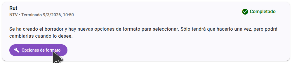 Una vez seleccionadas las opciones de formato, haga clic en "Guardar" para guardarlas en el proyecto. Estas opciones se utilizarán para todos los futuros borradores generados para el proyecto. Puede cambiar estas opciones en cualquier momento, y se aplicarán a todos los borradores futuros.