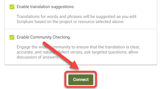 Si vous n'avez jamais connecté un projet à Scripture Forge :